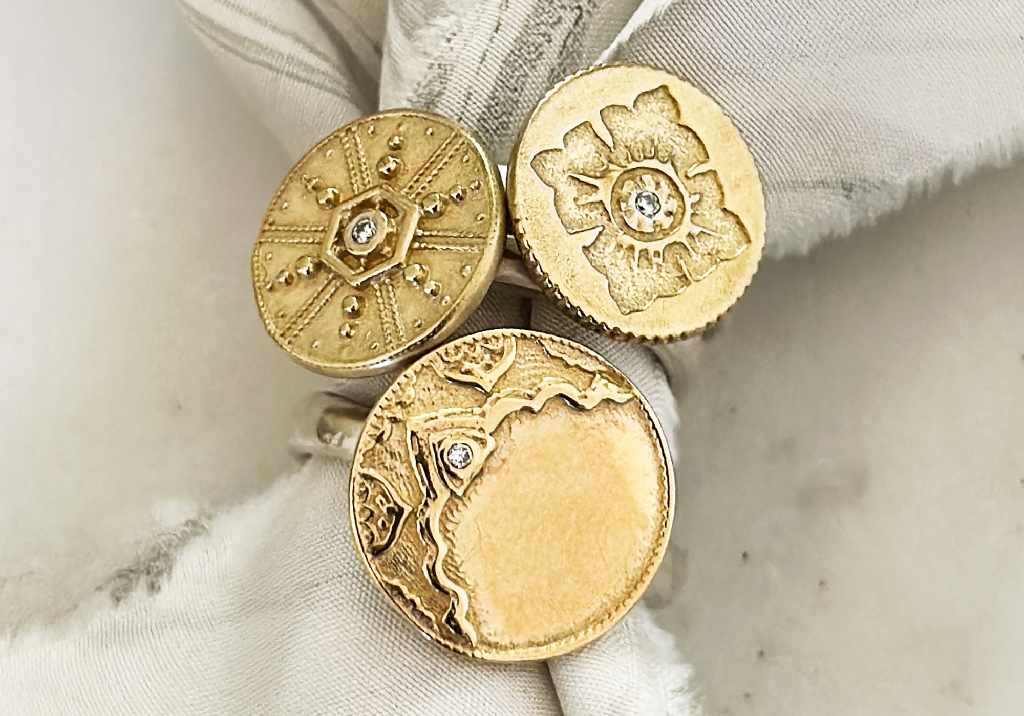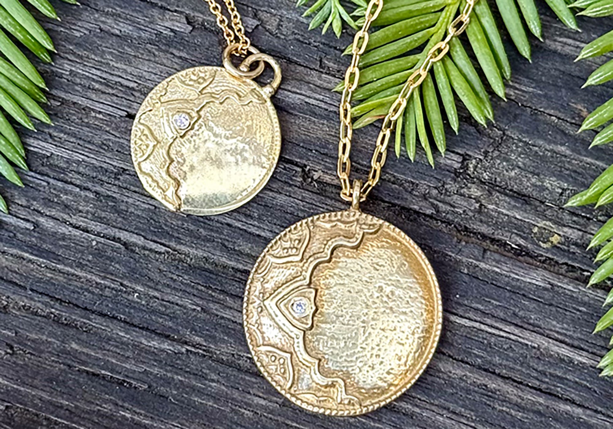 Our Ayla Pendant was the final piece in a series of designs inspired by the moon’s luminous beauty. Our original casting collection has always been influenced by natural elements—the phases of the moon, the vast night sky, and the textures and patterns found in traditional textiles. The challenge with Ayla was to create a design that married both celestial and earthly influences in a single, harmonious piece.